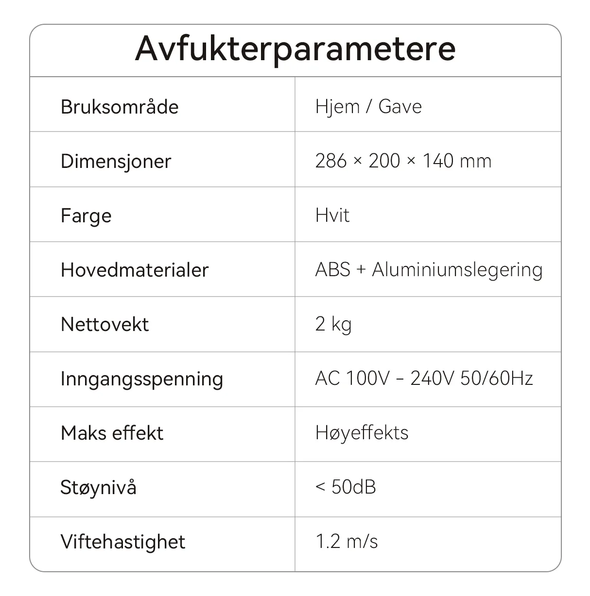 - Kraftig avfukting: Dual-core-teknologi fjerner raskt fukt og klam luft, slik at du alltid har frisk luft inne.