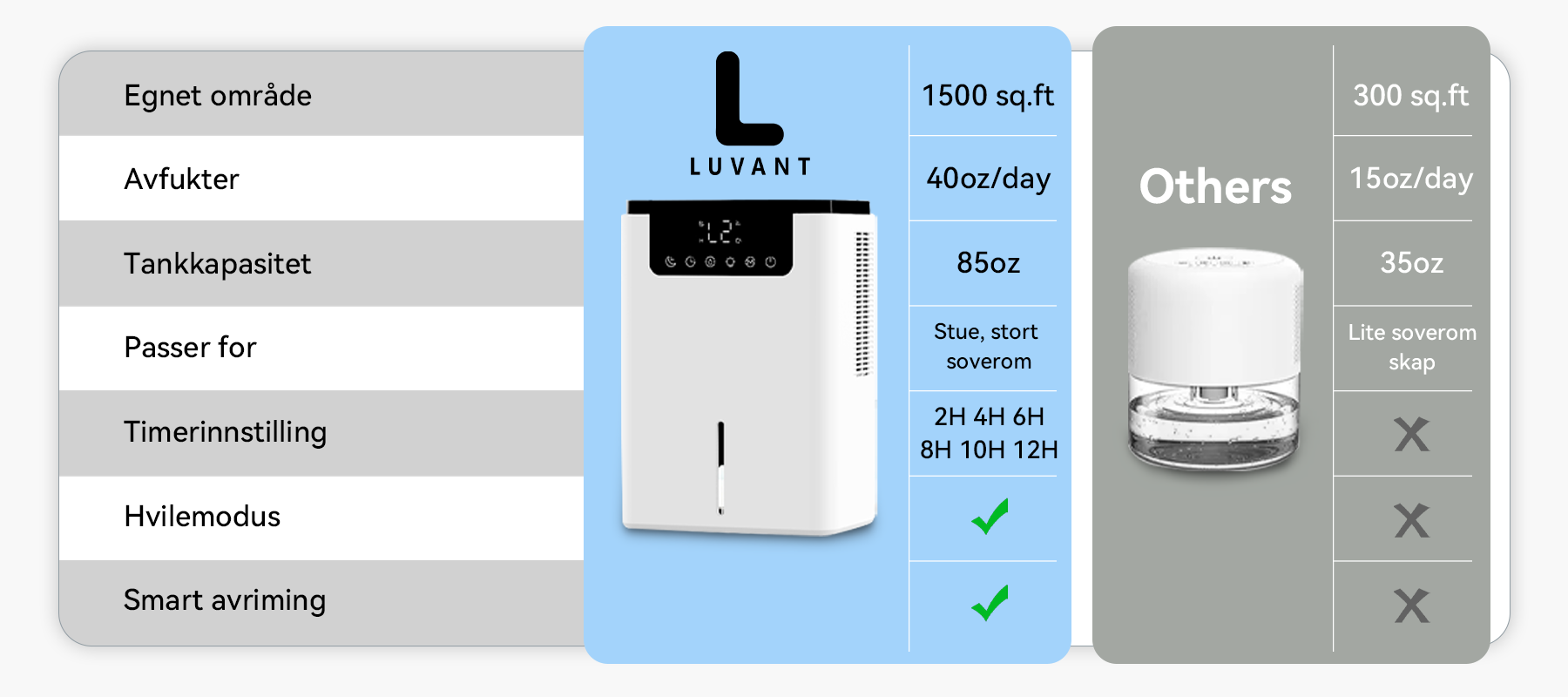 I dag er Luvant drevet av troen på at et komfortabelt hjem skal være uanstrengt. Vi utvikler apparater som forbedrer boarealet ditt uten at de krever konstant oppmerksomhet. Velg Luvant for komfort og velvære – utviklet med en dyp forståelse for hva som skal til for at et hjem skal føles virkelig godt å være i.