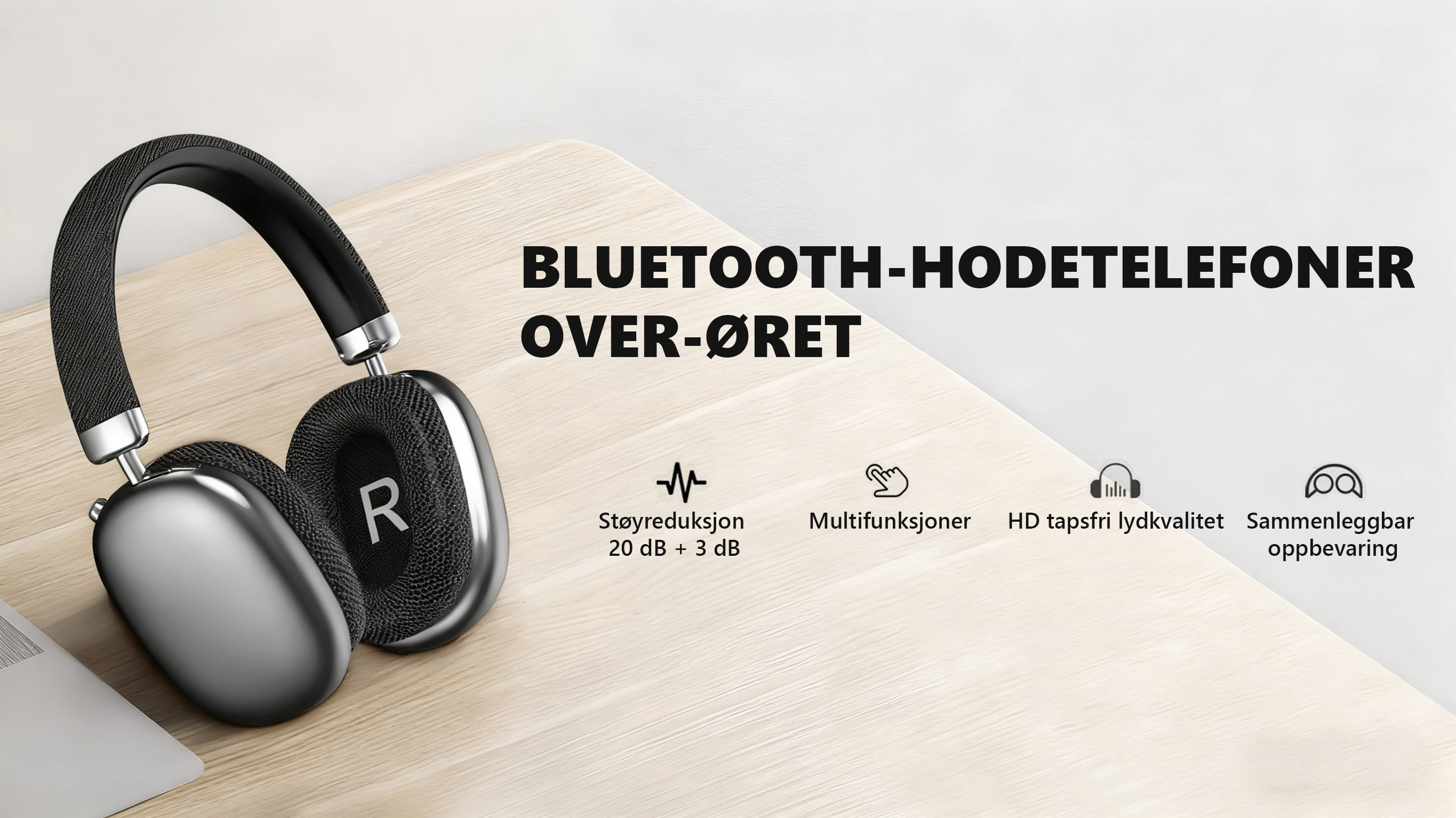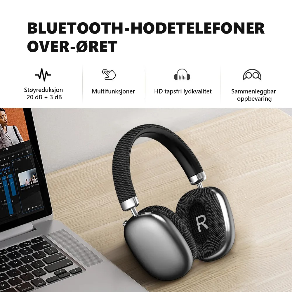 - Aktiv Støyreduksjon (ANC) – Blokker ut støy for å skape din egen stille sone og fokuser på lyden.